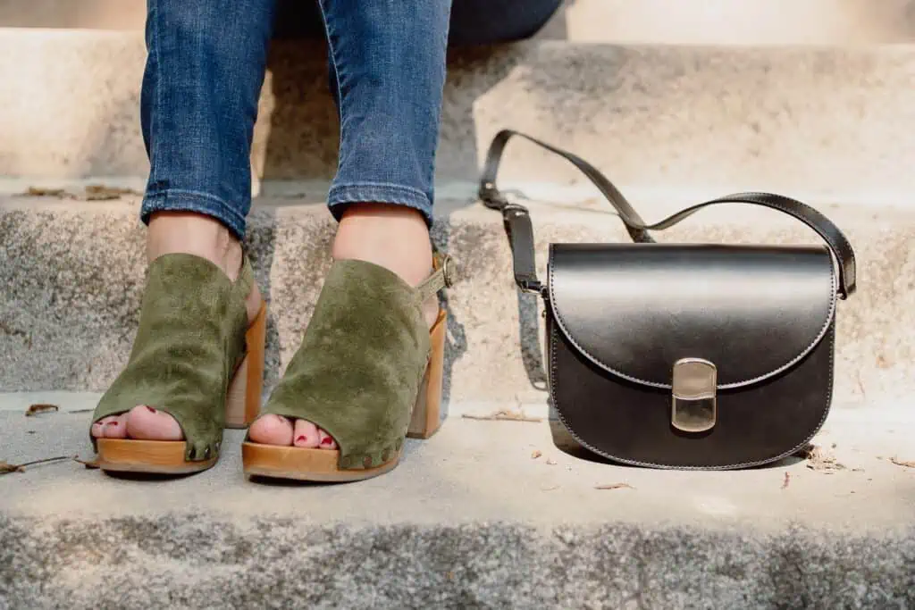 The shoes are the Dakota high clogs in Khaki. I sized up a size from my usual size 8 to a 9.